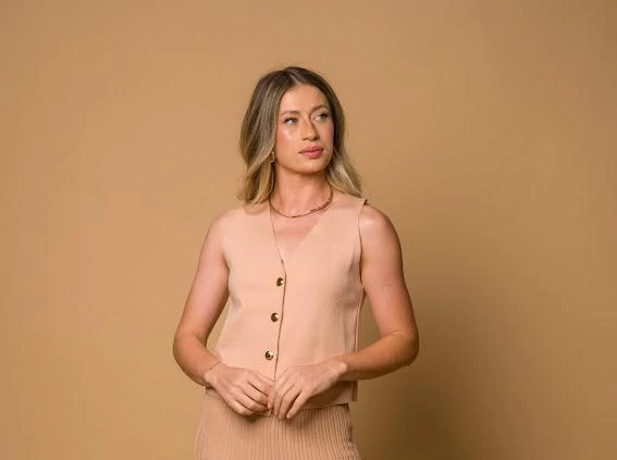 Descubra o charme do Colete Modal Vaní, uma peça super estilosa que vai transformar seus looks! Confeccionado em modal, tecido macio e confortável, ele traz botões de pérola que adicionam um toque de elegância única.